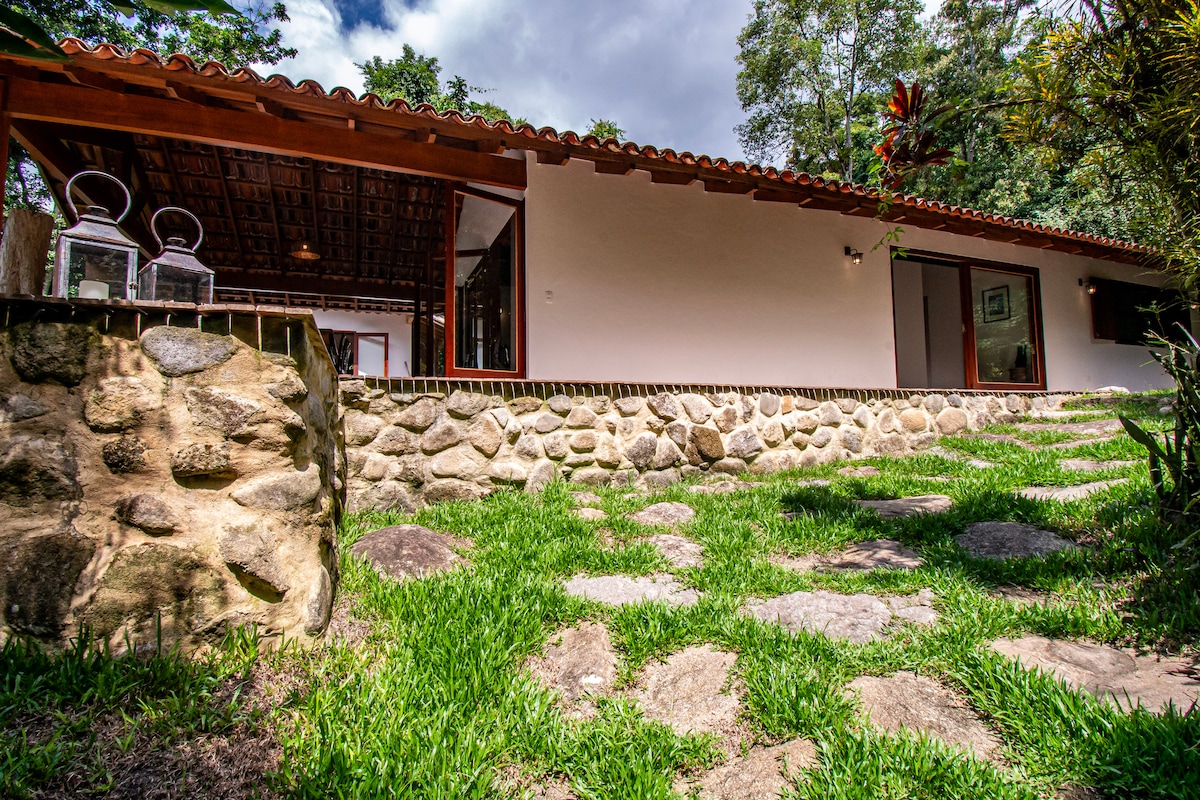 Brand new house in a quiet, paradisiacal place with total privacy, inserted in the Forest next to Parque da Bocaina in Paraty: + Panoramic view of the Valley and the Forest + 2 cozy rooms (suites) for up to 4 guests + Heated infinity pool + 100 Mbps High Speed Internet + Hot and Cold air conditioning + Private Waterfalls + Full kitchen + Gourmet Area with Barbecue and Wood Oven + 100% paved access, 10 km from downtown Paraty