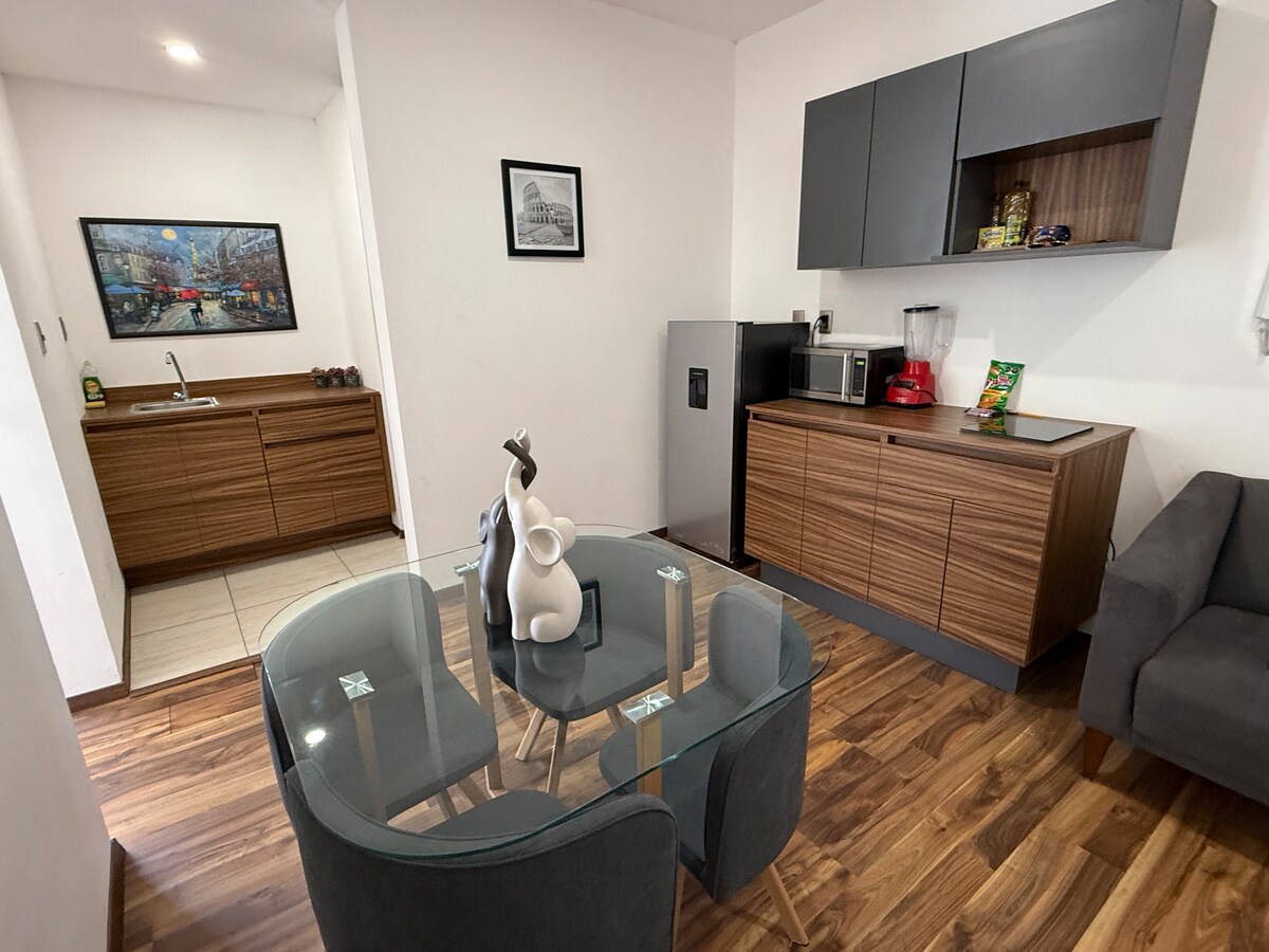 Relájate en esta escapada única! disfruta de este cálido y excepcional espacio, diseñado para que disfrutes tu estadía en la cuidad, con estilo y la comodidad de tener todos los servicios cerca; como hospitales, escuelas, centros comerciales, trota pista, restaurantes y espacios recreativos dentro de las instalaciones como alberca, roof garden y gimnasio, así como estacionamiento cubierto y elevador que harán de tu estancia, toda una experiencia placentera sea cual sea el motivo de tu visita.