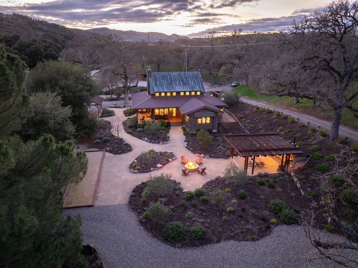 Vive la vida de rancho en California en 130 hectáreas, pero a poca distancia en coche encontrarás cafés, bodegas y playas. Después de pasear por los pastos compartidos con el ganado, relájate en la piscina climatizada de agua salada, en la bañera de hidromasaje y en la fogata al atardecer, o asa un tritip en una barbacoa Santa Maria, pon el cine 4K de 120" o toca una melodía en el piano. Diseñada para un máximo de 10 huéspedes, con 3 dormitorios y una habitación con literas, la casa combina el encanto tradicional con el lujo moderno, para que te marches con historias que valga la pena volver a contar.