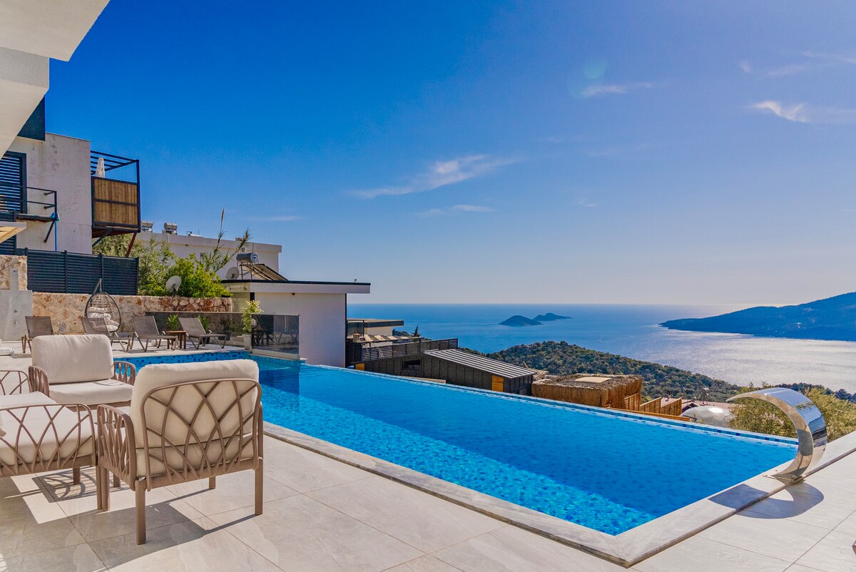 Villa de luna de miel en Kaş con vistas únicas al mar