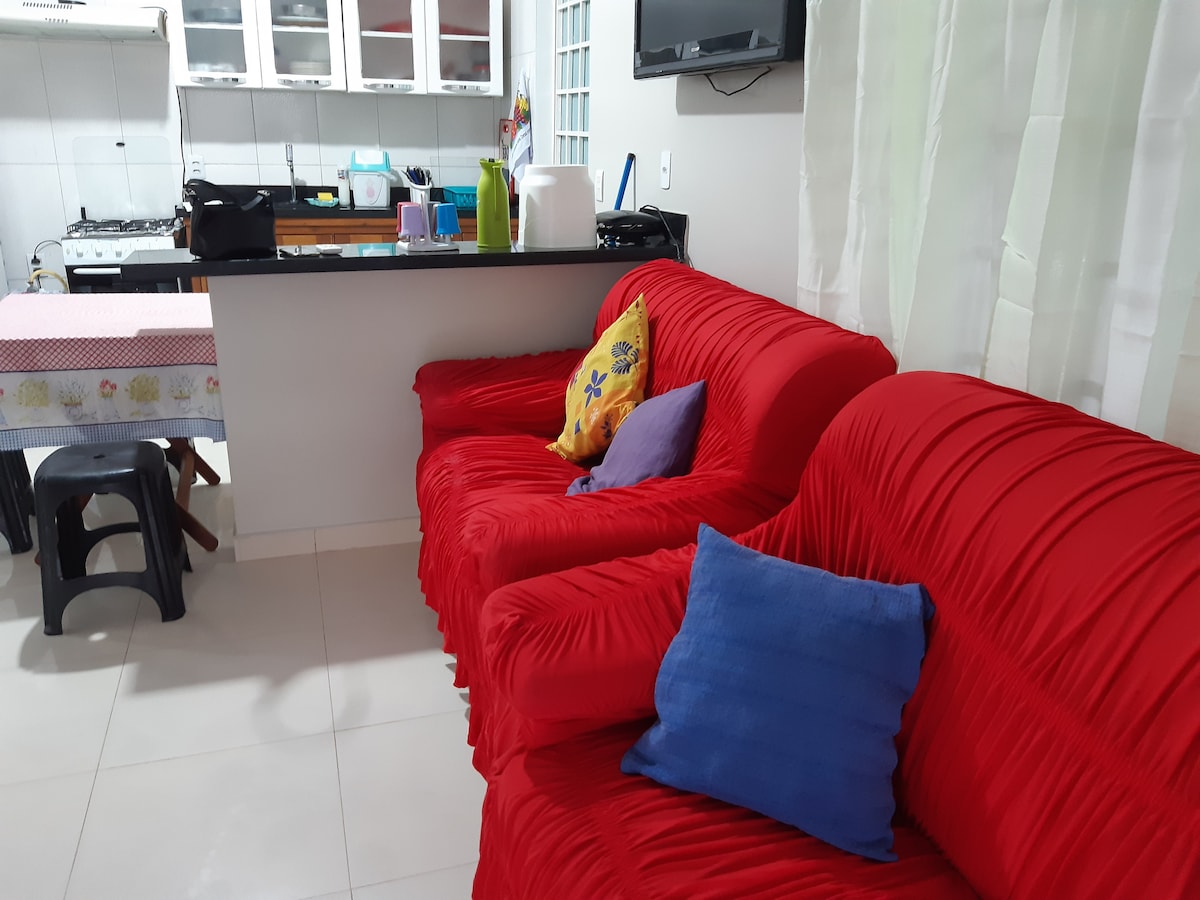 ¡Excelente relación calidad-precio! Casa con 1 suite y cocina americana. Tiene capacidad para 4 personas. Aire acondicionado, wifi, entrada exclusiva, privacidad. A 3,5 km del centro de Boa Vista, a 3 km del aeropuerto. A 3 km del complejo Ayrton Senna y a 1 km del parque Anauá. ¡Uber al centro barato! En un radio de 500 metros, hay 2 farmacias, 2 supermercados y una variedad de aperitivos. Carril bici a 100 metros, ofrecemos bicicletas y recorridos opcionales por la ciudad.