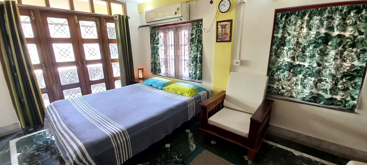 Alojamiento acogedor y cálido en el corazón de la ciudad. Ubicada en un tranquilo barrio de South Kolkata, esta hermosa casa ofrece la mezcla perfecta de encanto del viejo mundo y comodidades modernas. Relájate con toda la familia en este alojamiento tranquilo. La propiedad está en la planta baja y a poca distancia a pie del mercado Gariahat. También está cerca de centros comerciales prominentes, boutiques populares, hospitales, mercados y restaurantes. Proporciona un suministro de agua las 24 horas y mantiene un estricto estándar de higiene.