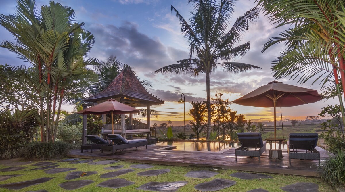 Villa Shamballa is a spiritual and tranquil haven that offers an intimate and indulgent private villa experience. This romantic hideaway magically perched atop a ravine along the mystic Wos River is the ideal location for a couple especially for their honeymoon and anniversary and birthday. "Special Offer for honeymoon and Birthday (same month of your stay) - min 3 nights or over 5 nights- Booking by 31 Mar '26 Complimentary 3 course pool side romantic candlelit dinner & flower bath.
