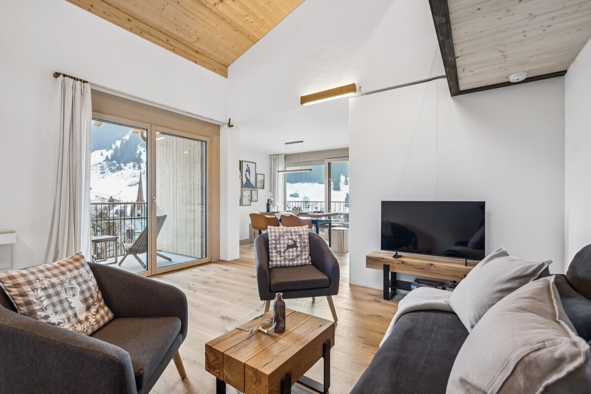 Este lujoso apartamento en el Schooren des Alpes combina el encanto alpino con un diseño moderno y el máximo confort. Diseñado por un reconocido diseñador de interiores austriaco, te ofrece un alojamiento temporal que no deja nada que desear. El apartamento impresiona con una sauna privada, bañera independiente para horas de relajación y una acogedora chimenea. acogedora chimenea. La impresionante terraza de 71 m² te ofrece una maravillosa vista panorámica del paisaje montañoso circundante.