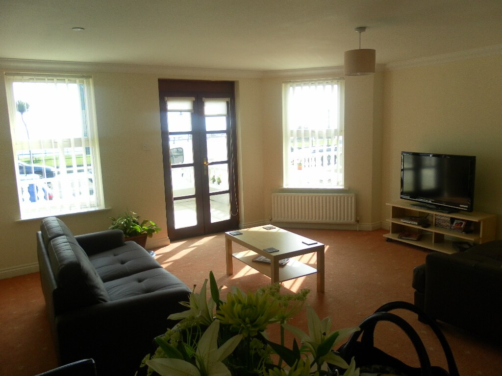 A spacious modern 4th Floor apartment with stunning sea views. A large living area and kitchen with two separate bedrooms. The master room has a king size bed, the twin has two single beds. The apartment is serviced by a lift and has parking at rear of apartments and if this is full usually plenty of parking at front of the property on the prom.