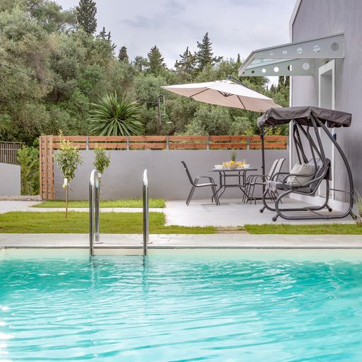 Una villa boutique de bienestar con piscina privada con vistas al mar Jónico, rodeada de las antiguas montañas de Corfú. Diseñada para permitir a sus huéspedes disfrutar de la naturaleza única de Corfian con absoluta relajación y privacidad. La casa se encuentra a solo 5 minutos en coche de las playas de Dassia y de Ipsos, a 7 km de la playa de Barbati y de muchas otras playas maravillosas. A solo 20 minutos en coche de la ciudad de Corfú, el aeropuerto y el puerto principal. Capacidad para 6 a 8 personas máx. Calefacción de la piscina solo bajo petición: de octubre a mayo (50 euros/día).