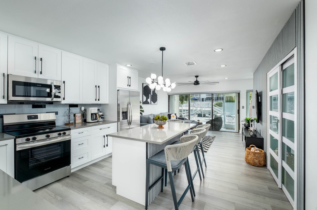 The beautiful Mariner’s Club is an island paradise in the heart of Key Largo. This upscale ocean front gated community combines resort style family fun with high end luxury plus all the amenities you can dream of! Our modern Villa sleeps 8 guests and is ideal for couples & families! We have the largest lagoon style pool in the Florida Keys, an elevated club house pool, jacuzzi with waterfall Grotto, fishing pier, marina, beach area, fitness center, game room, tennis & pickleball courts.