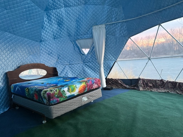 Enjoy the beauty of nature in a geodesic dome overlooking Lake Red Rock. Perfect for nature lovers, romantic getaways, anniversaries, birthdays, or even a peaceful business retreat blending comfort with breathtaking views. It features a remote-controlled solar light above the bed that turns on at dusk & can be switched off without leaving your bed. Solar panels & a battery system provide convenient power for charging small essentials—so you can stay comfortable while staying connected to nature.