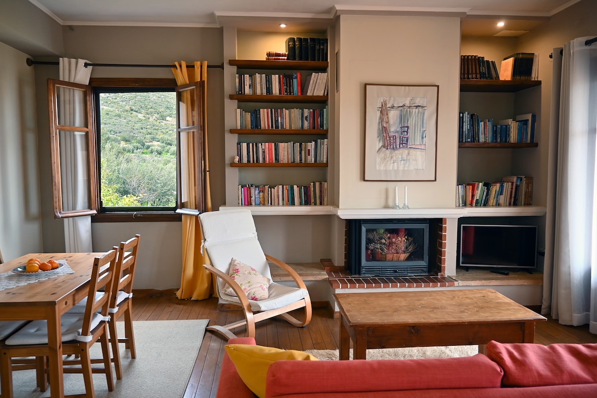 Casa de piedra rural con una gran estufa de leña restaurada en 2014. Ofrece un gran patio privado con horno de leña de piedra y una barbacoa. Echa un vistazo a la bodega donde se guardan antiguas herramientas rurales y un barril con el famoso vino tinto "agiorgitiko" local.