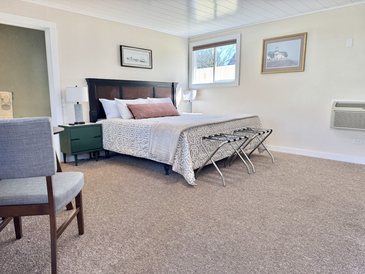 This apartment is the former residence of the original owners of the Bluenose Inn. Guests have full access to all of the hotel amenities. There is a full kitchen and living room and 2 bedrooms. One bedroom has a king bed and a full bathroom and the other room has a queen bed and full bathroom. There is pullout bed in the sofa in the living room. Off of the living room is a large deck.