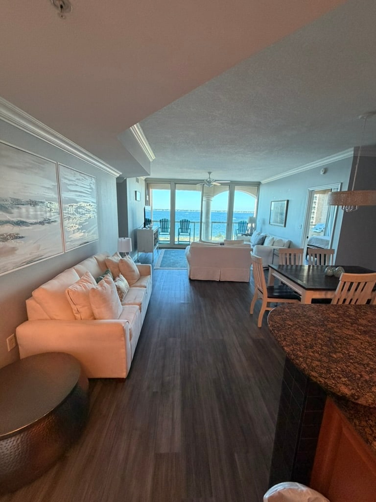 Ven a disfrutar de este hermoso condominio de 5 estrellas frente al golfo, piscina climatizada junto al golfo y jacuzzi. Esta unidad recién renovada ofrece un balcón privado frente al golfo con impresionantes vistas al golfo, donde podrás ver delfines, nadar en 2 piscinas junto al golfo, 1 climatizada y jacuzzi en el golfo. Capacidad para 6 personas, balcón frente al golfo, dormitorio principal en el golfo, 2 dormitorios, 2 baños, la suite principal tiene una lujosa cama tamaño king Cloud Lux Tempur-Pedic. La habitación de invitados 2 tiene un colchón tamaño queen Euro Top Plush, la sala de estar tiene un sofá cama tamaño queen de espuma viscoelástica.