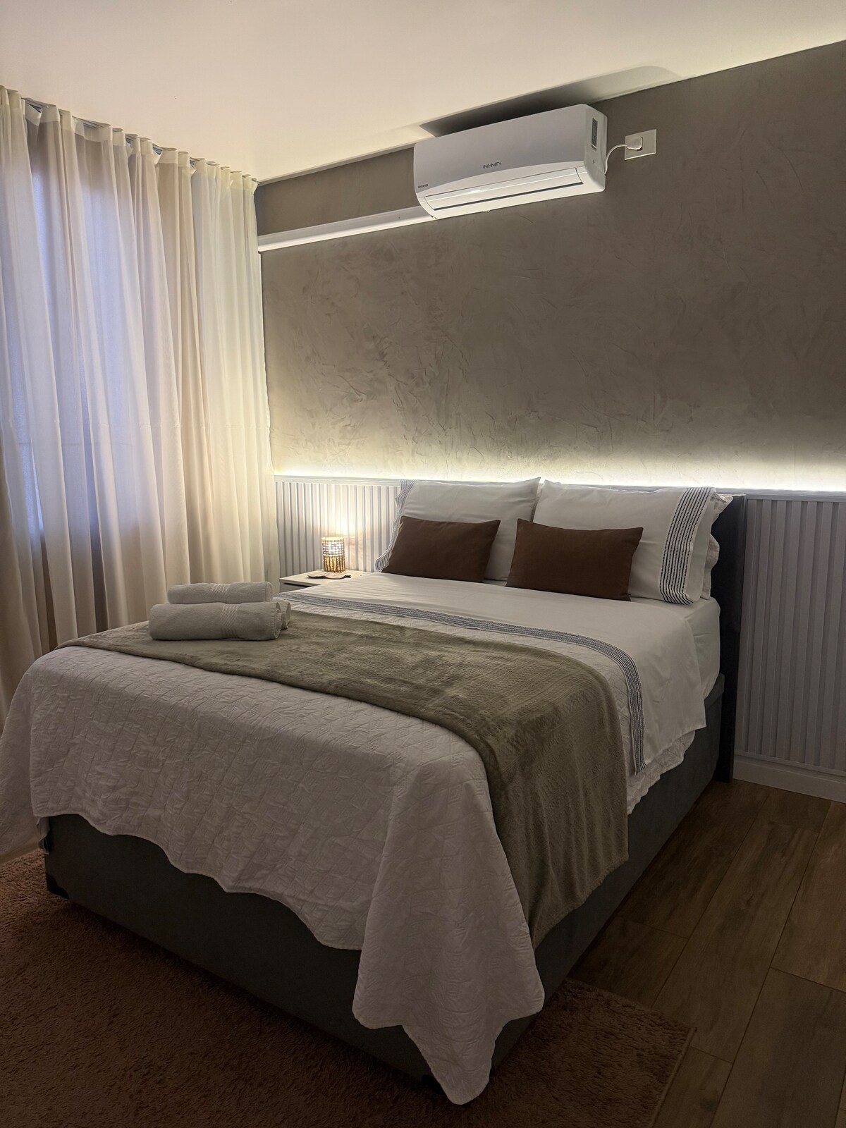Apartamento con aire acondicionado frío y caliente, muy acogedor y equipado. ¡Calle tranquila, muy bien ubicado! Cerca de prácticamente todo: Cons Americano, centros comerciales, hospitales, farmacias, panaderías, supermercados, ferreterías, etc... A 4 cuadras del Cons Americano y del supermercado Carrefour Pizzería frente al edificio Panadería en la esquina y otra a 2 cuadras. Farmacias a 3/4 cuadras Centro comercial Wallig 1,2 km Shopping Iguatemi 2,5 km Hospitales Conceição 1,2 km y Cristo Redentor 1,8 km Aeropuerto 4 km