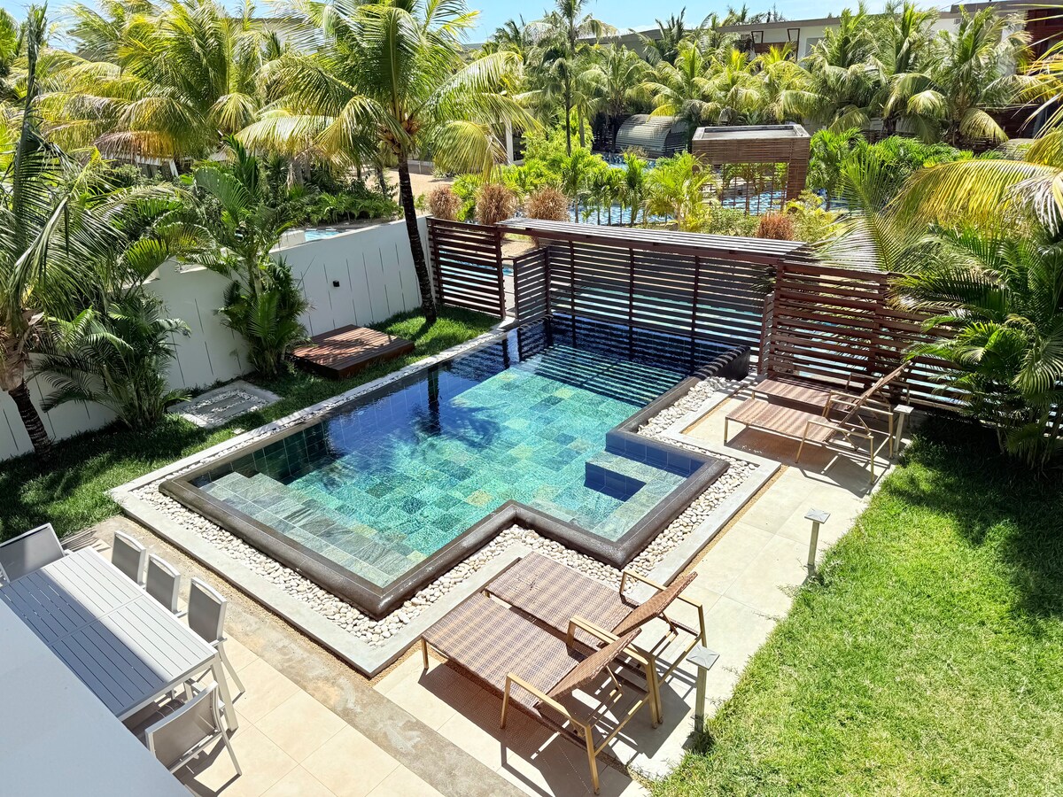 Espléndida villa de 3 dormitorios en suite con piscina privada climatizada en una residencia tranquila y segura. Muy cerca del centro de Grand Bay (3 minutos). Diseñado para ofrecer la mejor experiencia para parejas o familias. Regálate unas vacaciones de lujo con total privacidad. Con espacios interiores y exteriores, la villa ofrece una decoración ordenada, cálida y contemporánea. Hay un gimnasio y un spa disponibles en la residencia. El servicio de limpieza incluye 3 veces a la semana.
