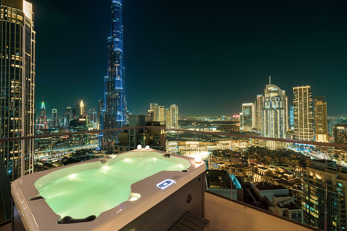 Vista a la fuente y el Burj | 2 habitaciones con jacuzzi privado