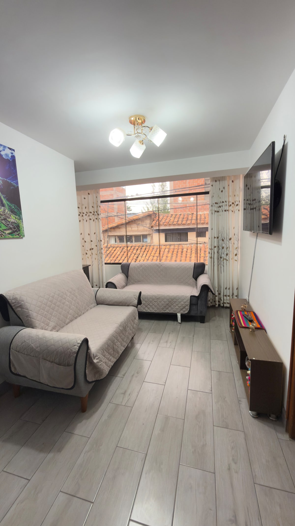 Mi nombre es diego quiero mostrarte un bello departamento completamente amoblado para poder disfrutar de una estadía cómoda como en casa, la ubicación de nuestro departamento está a solo 5 minutos de la plaza central del cusco, la zona cuenta con seguridad 24 horas. sentirás la magia del cusco contamos con: -2 habitaciones , 3 camas -2 baños -Agua caliente -Calefactor ♨️ -Cocina, sala comedor ( sofas, mesa , cocina.) -Patio -Lavadora -Microondas -TV -Wi-fi -telecomunicador -etc