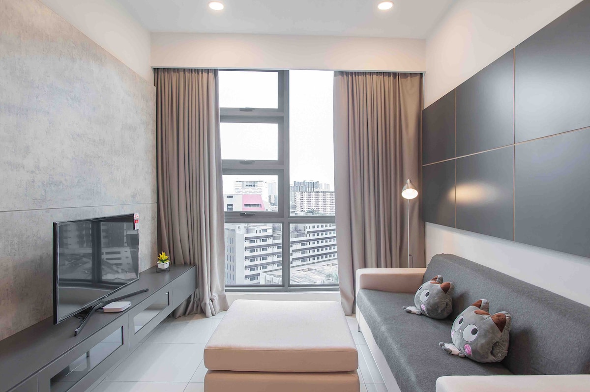 ¡Te damos la bienvenida a nuestro encantador apartamento de 1+1 dormitorios en Bukit Bintang, K.L.! Nuestro apartamento está situado en la zona más vibrante y rica en patrimonio de KL, donde puedes encontrar comida, tiendas, lugares de interés y vida nocturna de primera categoría. El interior cuenta con 1 dormitorio con estudio, 1 baño, cocina, sala de estar y un hermoso balcón con impresionantes vistas al horizonte de la ciudad de Kuala Lumpur. Tanto si viajas por negocios como por placer, nuestro apartamento es el alojamiento ideal para explorar todo lo que ofrece Kuala Lumpur.