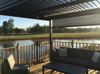 Esta hermosa cabaña junto al lago tiene vistas a un impresionante lago, campo de golf y tranquilo sendero natural para pasear. Su ambiente tranquilo lo hace perfecto para que los huéspedes de vacaciones se relajen. La casa de campo bien equipada se abre a una amplia zona de terraza, amueblada con comedor y asientos relajantes, una increíble pérgola y barbacoa. Conduce al muelle privado, lo que permite pescar desde el lago. El parque Leisure Suite cuenta con una fabulosa piscina, sala de vapor, sauna y gimnasio, con el moderno Cafe Revive, restaurante y Spikes Bar.