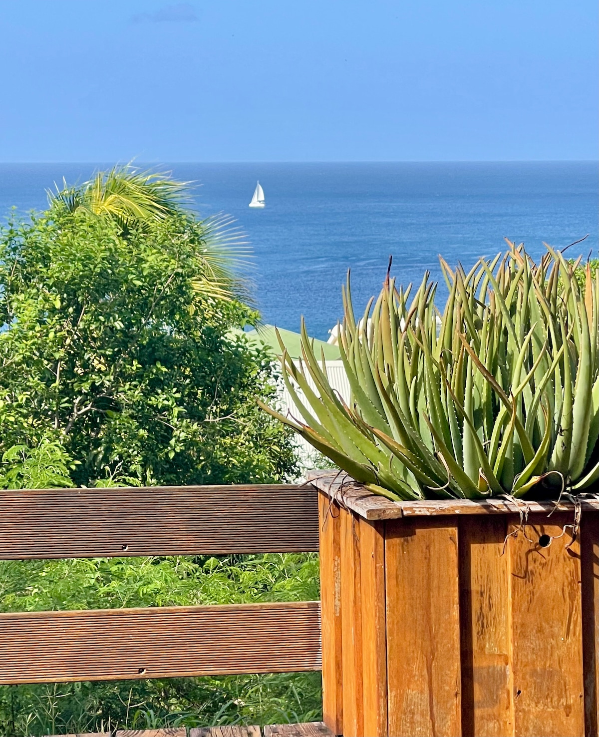 Encantador apartamento moderno independiente con aire acondicionado (322 pies cuadrados), planta baja de la villa del propietario, terraza de madera junto al agua (160 pies cuadrados). Este lugar único ofrece una magnífica vista sobre el fondeadero de Grande anse d'Arlet y un acceso directo y gratuito a nuestro muelle privado y al mar. A 3 minutos a pie de la tranquila playa de Grande anse a lo largo de nuestro carril privado.