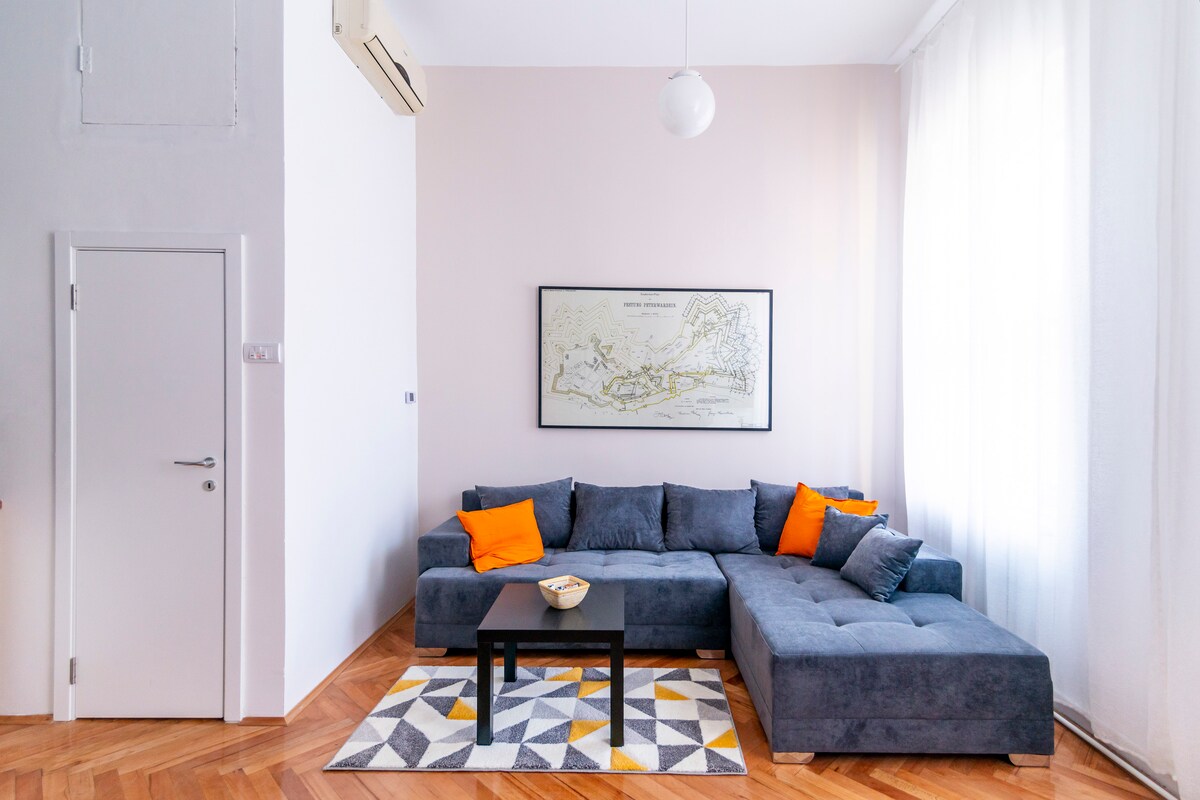 Sé uno de los primeros huéspedes en nuestro apartamento de 35 metros cuadrados (375 pies cuadrados) en una ubicación estupenda. La calle tranquila con fachadas rústicas y tilos te dará la oportunidad de sentir el antiguo espíritu de Novi Sad. Estarás situado en una excelente ubicación, cerca de todos los lugares que desees visitar, sin importar si te hospedas por negocios o por placer. El apartamento está a solo 600 metros (5 minutos) a pie de la plaza central de la ciudad. Idiomas hablados: inglés, serbio.