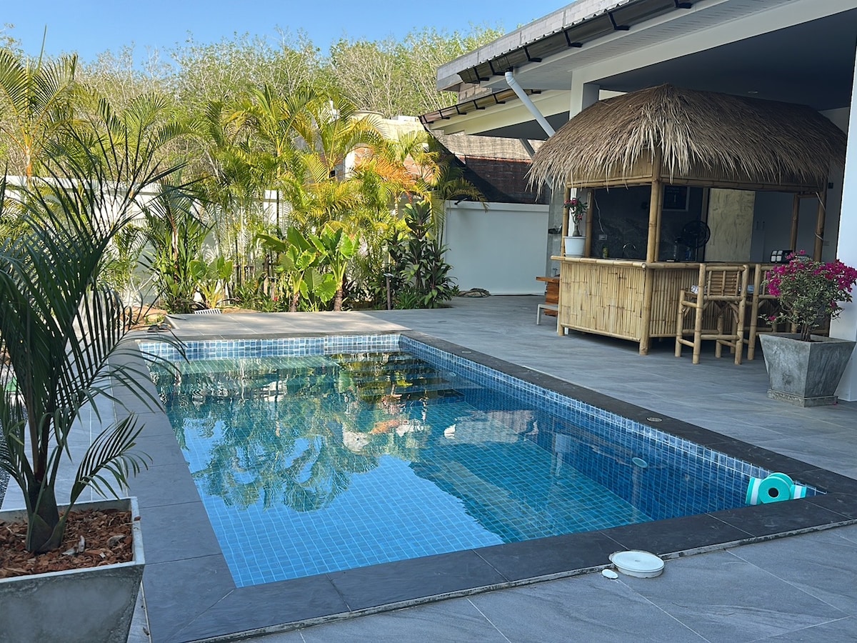 #Nuestra villa con piscina privada recién reformada se encuentra a menos de 5 minutos en coche de la playa. Hacemos todo lo posible para que nuestros huéspedes se sientan como en casa. Podrás disfrutar de una botella de vino de cortesía y de nuestro cuidador personal durante toda tu estancia. El interior de la casa fue rediseñado recientemente por un reconocido diseñador local y es una hermosa fusión de estilos tailandeses y occidentales, fusionando a la perfección los dos.