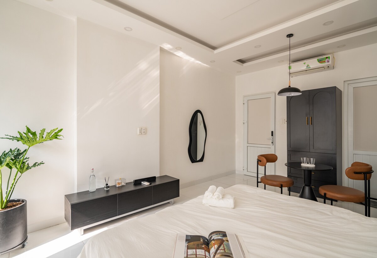 Cozy VN vintage homestay in central Saigon: • 2 km to Tan Son Nhat Airport & Phan Xich Long food street • 3 km to District 1 & major attractions, 4 km to Notre-Dame Cathedral Surrounded by popular Vietnamese eateries • Spacious bed (up to 3 guests) • Modern bathroom with bathtub & toiletries • Parking for cars & motorbikes • Café downstairs & photogenic corners • Projector, water purifier, coffee machine Enjoy thoughtful hospitality blending international touches with classic Vietnamese charm.