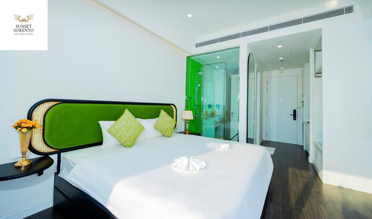 Bienvenido a Varia Apartment, un espacioso apartamento de 1 dormitorio en Sunset Town, Phu Quoc, con impresionantes vistas al mar, balcón privado y vistas directas a los fuegos artificiales por la noche. Los huéspedes disfrutan de una piscina en la azotea, gimnasio, club infantil, zona de juegos interior, wifi gratuito y aparcamiento seguro. El apartamento cuenta con una cocina totalmente equipada, un baño moderno, aire acondicionado y check-in privado. Perfecto para parejas, familias o viajeros solitarios que buscan comodidad y puestas de sol inolvidables.