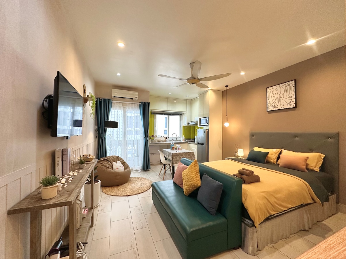Diseñado para estadías cortas o largas, el estudio minimalista cuenta con 2 camas queen, cocina completa y baño privado con ducha de efecto lluvia. La mejor parte de esta unidad es nuestra "sala de estar", un salón hundido lleno de almohadas y cojines lujosos que se abre a un pequeño jardín. Realmente es el lugar perfecto para relajarte y leer un libro. Los huéspedes también tendrán acceso a una cocina compartida más grande, un área de coworking y lavadora/secadora. ¡Estamos a solo 15 minutos del aeropuerto y a 15 minutos del mercado de Ben Thanh!