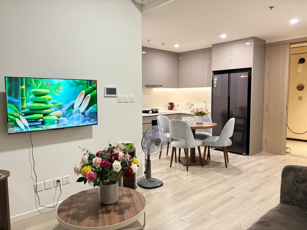 - Situado en Master Centre Point, Vinhomes Grand Park, cerca de Vincom Mega Mall y Winwonders Water Park y parque temático. - El apartamento está limpio y es bonito, con cómodos juegos de cama. - Wifi fuerte tanto para el trabajo como para el entretenimiento. - Servicios completos y modernos: nevera grande, estufa de inducción, microondas, lavadora, TV inteligente de 65 pulgadas, hervidor de agua, olla de arroz, secador de pelo, plancha, sombrilla, agua mineral Lavie, condimentos... - El gimnasio y la piscina están incluidos para los huéspedes.