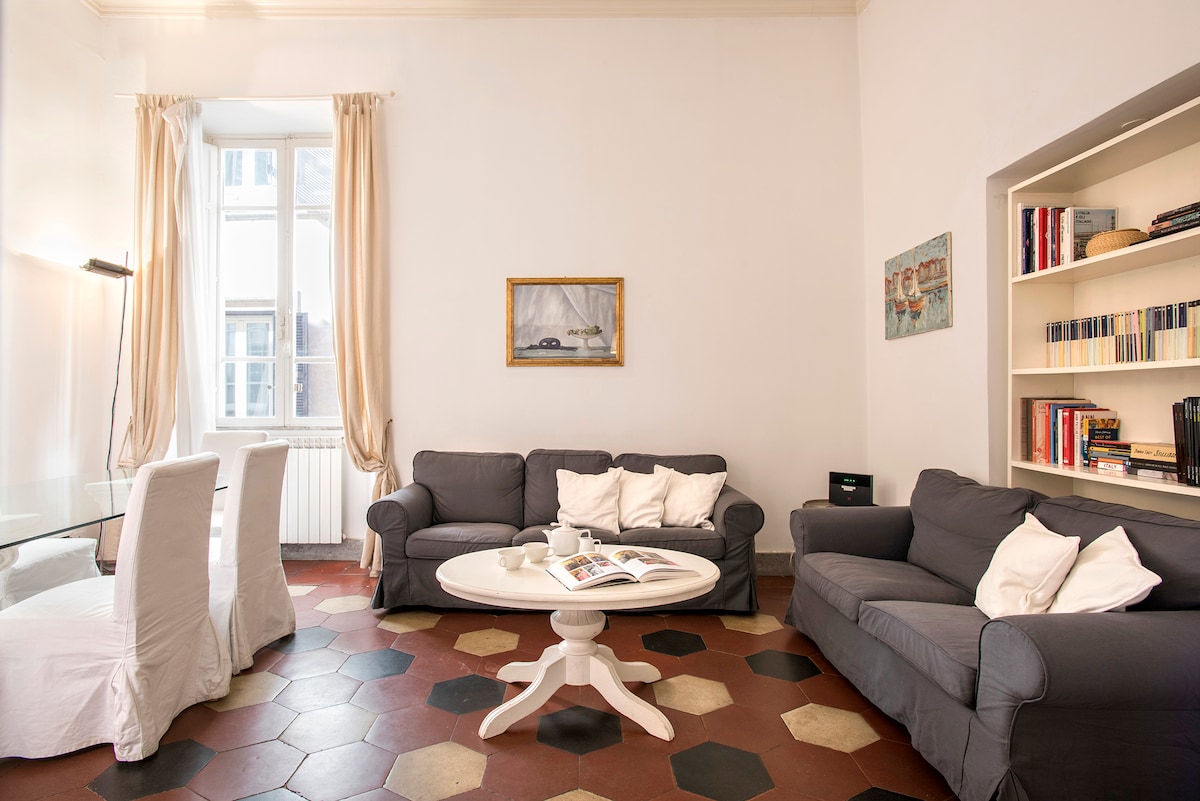 A cozy apartment for 4/5 people, in the heart of Rome, a few steps from Piazza Navona. Don't waste your precious time waiting for buses or your money paying for cabs, you can easily visit almost all the most fascinating sites just by walking in the heart of Rome. Very quiet, all windows overlook the inner courtyard. For reservations registered on or after July 12, early check-in! We want our guests arriving after an exhausting overnight flight to have rooms and bathrooms immediately available.