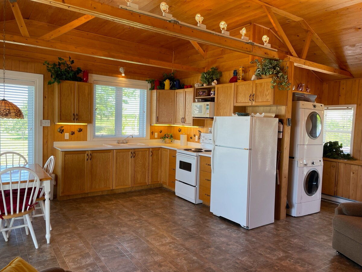 Ven y disfruta de un pedacito de cielo en esta casa de campo totalmente equipada frente al río. Situada en el pintoresco río John con una de las mejores puestas de sol de Nueva Escocia en tu terraza. Cabaña de 2 dormitorios bellamente decorada, completa con bomba de calor, lavavajillas, lavadora y secadora (gratis) y barbacoa. Disfruta de una terraza junto al río, así como de un muelle flotante (de mayo a noviembre) en el canal del río (lo suficientemente profundo para la mayoría de los barcos y perfecto para practicar kayak, piragüismo o natación).