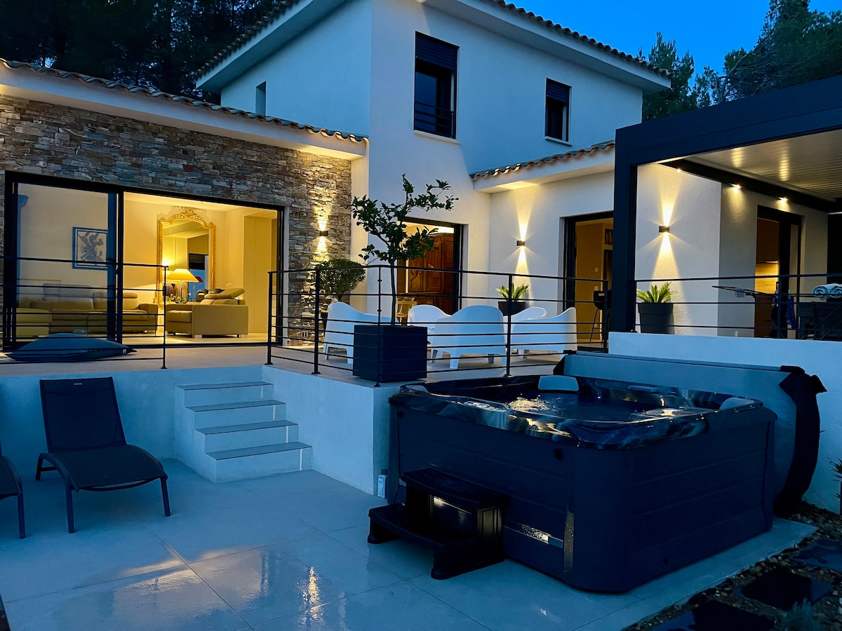 ¡Le damos la bienvenida a nuestra encantadora casa de campo provenzal! Viva como en una novela de Pagnol, rodeado de sol y del canto de las cigarras. Ubicada entre viñedos y campos de lavanda, la casa ofrece vistas impresionantes que se extienden hasta Sainte-Victoire. ¡Disfrute de su copa de vino rosado mientras contempla la mágica luz dorada de la puesta de sol! ¡A los niños les encantará el jardín! No hay acceso al transporte público. Casa de campo renovada con cariño, que combina el encanto del viejo mundo con la comodidad moderna. Jardín en constante evolución. Capacidad para hasta 6 adultos + un bebé.