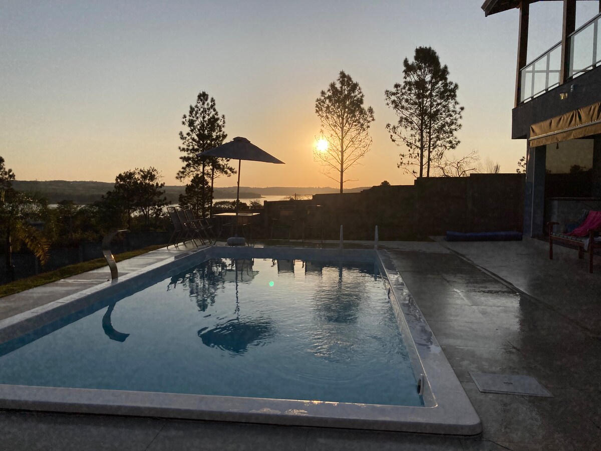 Arquitetura aconchegante e moderna, experiência única de tranquilidade e conforto com seis quartos espaçosos, todos equipados com ar-condicionado. Garantimos que sua estadia seja tão relaxante quanto a brisa da represa. Cozinha completa e toda equipada para pessoas exigentes, Caiaques para explorar as águas serenas da Represa. Belo píer com 30m2, Todos os quartos equipados com TVs Smart, possibilitando bons momentos de descanso. Conforto e elegância em um só lugar!!!