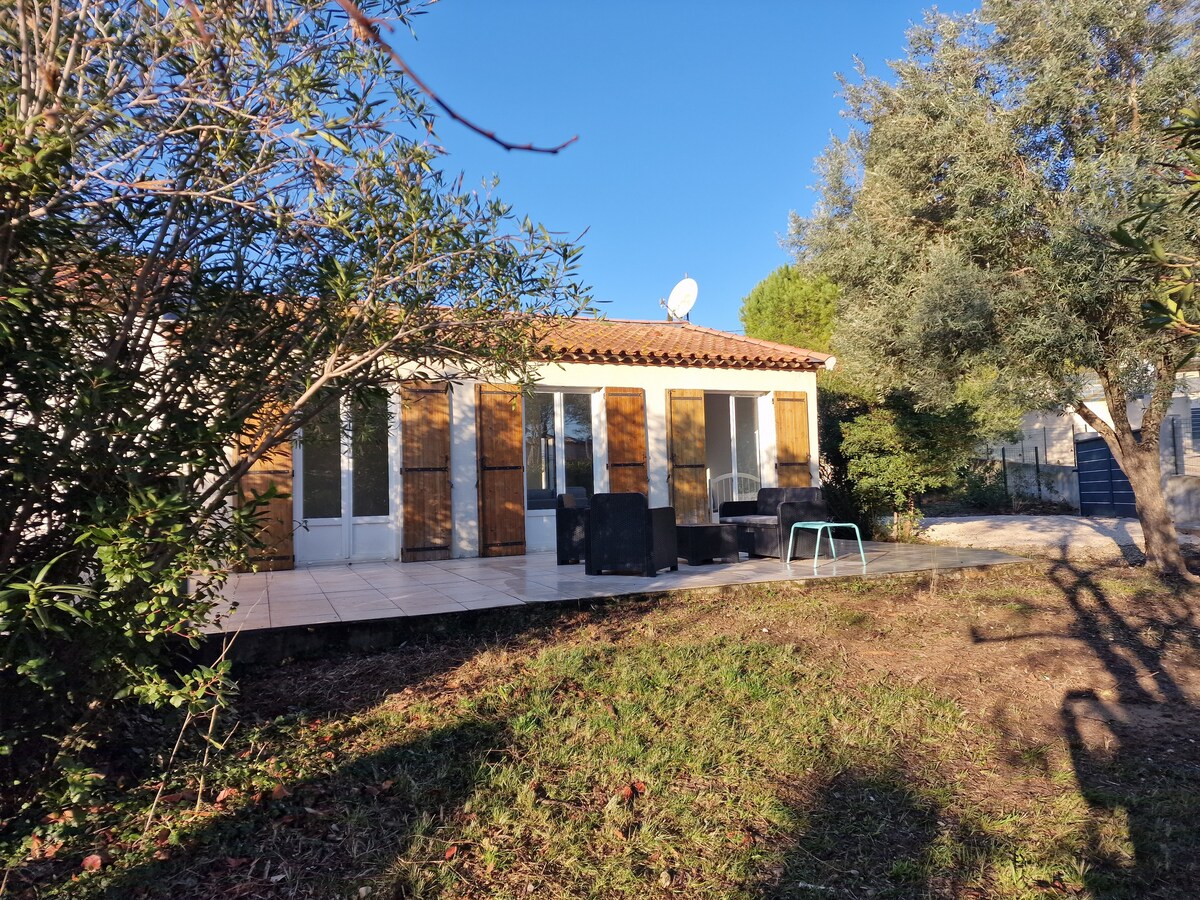 /* Information COVID-19 : Une désinfection est faite après chaque départ et avant toute nouvelle arrivée */ Quartier calme, dans petit village entre vignes et guarrigue. 14 kms de la plage et 10 kms de Montpellier. Palavas et ses plages sont à 20 minutes en voiture. Villa charmante avec jardin devant et derrière la maison sans vis à vis. Cour intérieure avec des grands chênes. Jardin fleuri. Village et alentours aménagés de pistes cyclables. Contact par mail pour plus de renseignements.