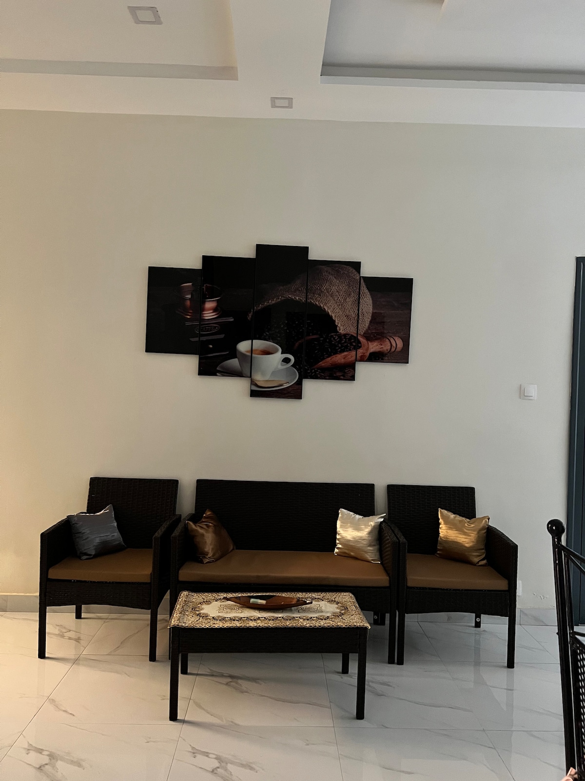 Olvídate de tus preocupaciones en este alojamiento espacioso y sereno situado en Mbao, Keur Mbaye Fall. Totalmente equipada con un dormitorio con su sala de estar, baño, aseo de invitados y cocina. Dispone de un contador woyofal que el cliente debe recargar para la electricidad, todo por un pequeño presupuesto.