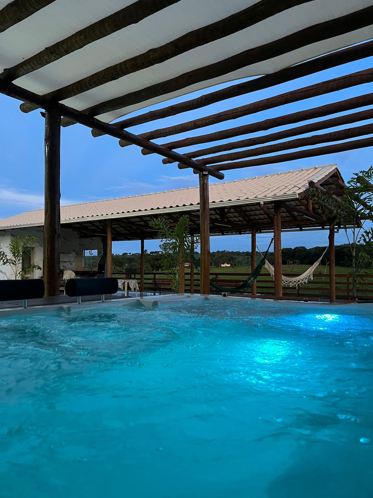 ¡Desconecta todo y conecta con la naturaleza! Un ambiente acogedor y tranquilo para un excelente fin de semana con familiares y amigos. ¡Pimenta, maravillosa ciudad! Llena de bellezas naturales, sitio cerca de Saint Hilary y varias cascadas. Luego puedes aventurarte por senderos y hacer turismo. ¡Tenemos un delicioso jacuzzi climatizado con capacidad para 8 personas cómodas! Una chimenea al aire libre para grandes momentos juntos, ¡también tenemos una hermosa cubierta de madera que conduce al agua!