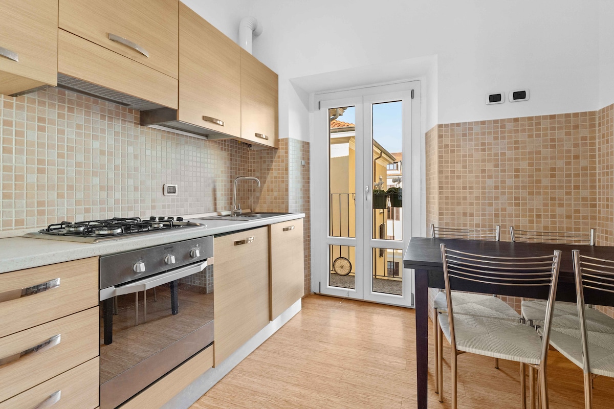 An elegant stay in the heart of Porta Venezia, enhanced by a spacious private terrace, perfect for relaxing moments. The interiors blend contemporary style with industrial character: black steel windows, warm materials, and soft lighting create a refined and welcoming atmosphere. Quiet and private, yet just steps away from the vibrant heart of Milan, surrounded by restaurants, boutiques, and the metro — the perfect setting to experience the city with style and comfort.
