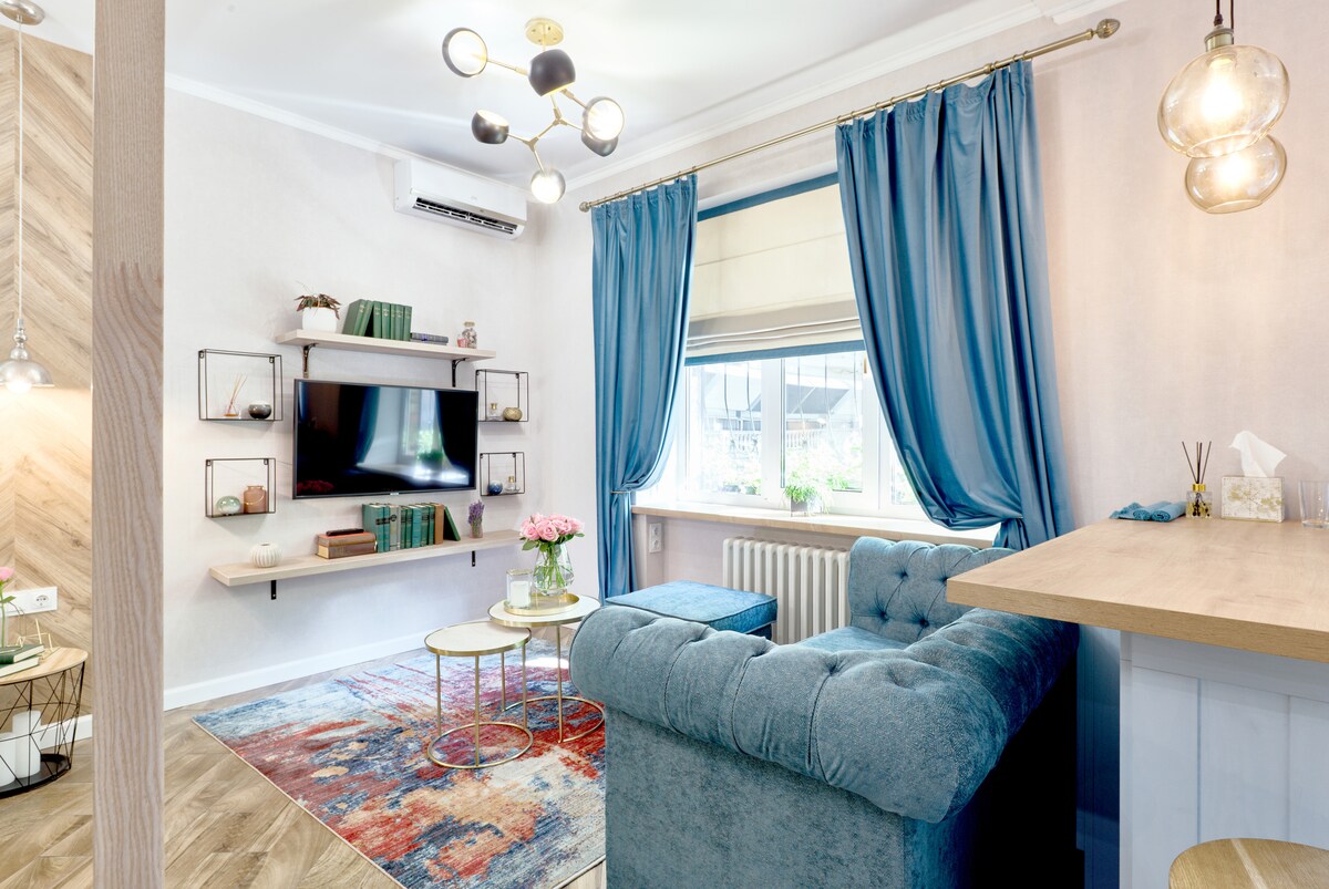 Discover minimalist peace in our designer 1-bedroom apartment in Kyiv’s heart. Space: Queen bed, Smart TV, AC & high-speed Wi-Fi. Kitchen: Fully equipped with coffee/tea. Location: New building near Universytet Metro & Shevchenko Park. Quiet, yet steps from top cafes. Perks: Private balcony, city views, and easy self check-in. ✨ Clean, serene, and perfectly located. Book your unique Japandi experience today!