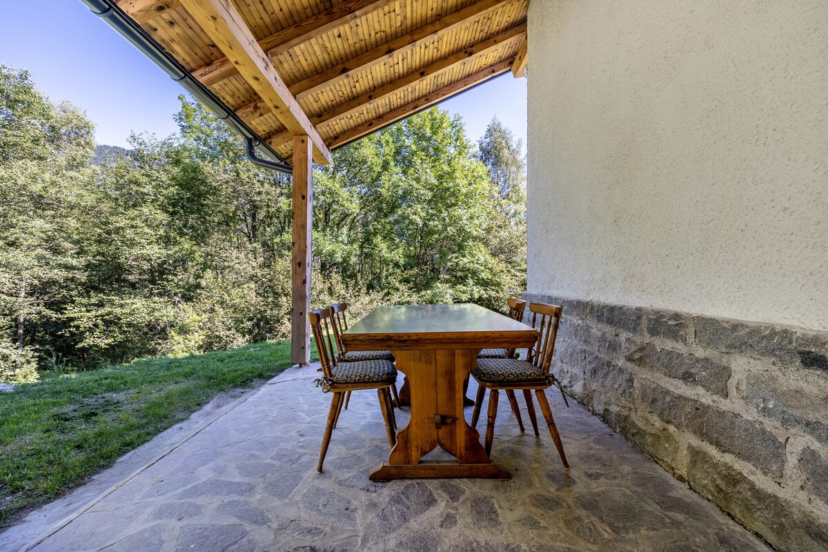 Antiguo granero de montaña de 1681, reformado con madera, piedra y vidrio. Vista panorámica de bosques y valles, dos terrazas floridas con hamacas y cojines y una chimenea romántica, dos amplios salones, tres dormitorios tranquilos y un ático luminoso. Mide 240 m2 (en dos niveles) y se encuentra a una altitud de 630 metros en un pequeño pueblo soleado cerca del bosque, en el parque natural de Adamello. Auténtica experiencia en la naturaleza, muchas actividades posibles.