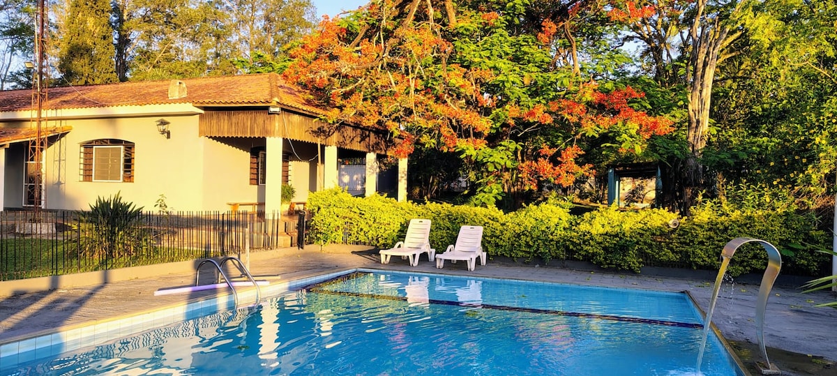 Acomodação para “20 pessoas” confortavelmente! Nosso espaço possui: - 6 quartos (5 são suítes). - 6 banheiros no total. - Todos os dormitórios possuem ar condicionado. A casa é grande, confortável, bonita e arejada. O Refúgio tem área de lazer completa: - Piscina: a maior e mais bonita da região. - Campo de futebol. - Churrasqueira em frente à piscina. - Salão de festas. - Mesa de bilhar. E se você gosta de contemplar um exuberante pôr-do-sol, escolheu o lugar certo. Fica o convite!