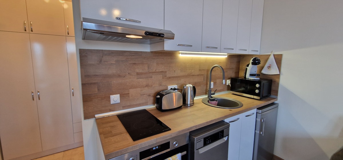 Bienvenido a este moderno y elegante Airbnb con impresionantes vistas panorámicas de las montañas Pirin de Bansko. La ubicación es inmejorable, a solo 30 metros de la carretera de esquí y a pocos minutos a pie del restaurante de Bansko y de la franja de après-ski. Después de un día en las pistas, encontrarás todo lo necesario para relajarte. Una cocina moderna y totalmente equipada, calefacción por suelo radiante, una cómoda sala de estar y una lavadora/secadora. También puedes hacer uso de las instalaciones de gimnasio gratuitas las 24 horas. ¡Estoy deseando recibirte!