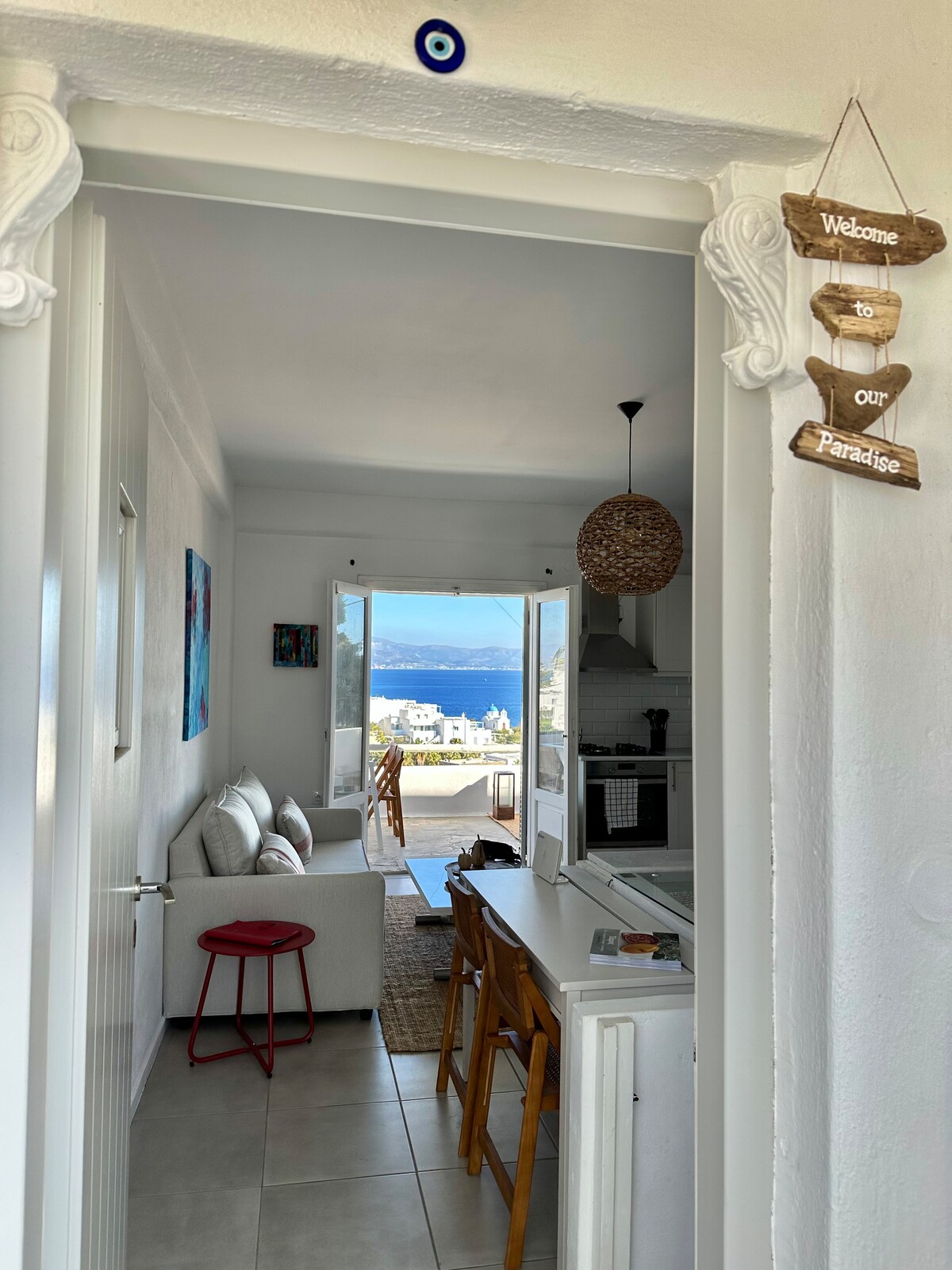 El Departamento Superior junto a la playa se encuentra en el último piso de un edificio que se encuentra dentro del mar ... Proporciona una sala de estar con cocina totalmente equipada, un dormitorio y dos baños. La sala de estar tiene vistas al mar Egeo y a la isla de Naxos. El dormitorio tiene vistas al mar por toda la playa de Piso Livadi y el tradicional muelle . ¡Disfruta de tus vacaciones casi a bordo!
