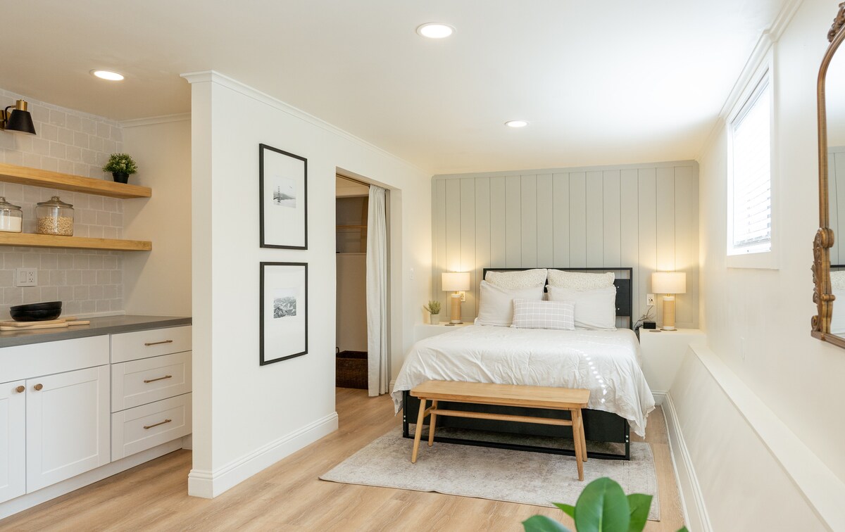 In the heart of the Bay Area's beautiful Poets Corner! Imagine wonderfully comfortable weather, warm coffee shops, and quaint parks. This Studio Suite is walking distance from downtown shopping, community parks, and the Pleasant Hill Library. Also close access to the freeway (I-680) and downtown San Francisco (30 min by BART). Great for small family retreats or business professionals. Weekly and monthly discounts built-in to Airbnb booking calculation. Keyless self-check in.