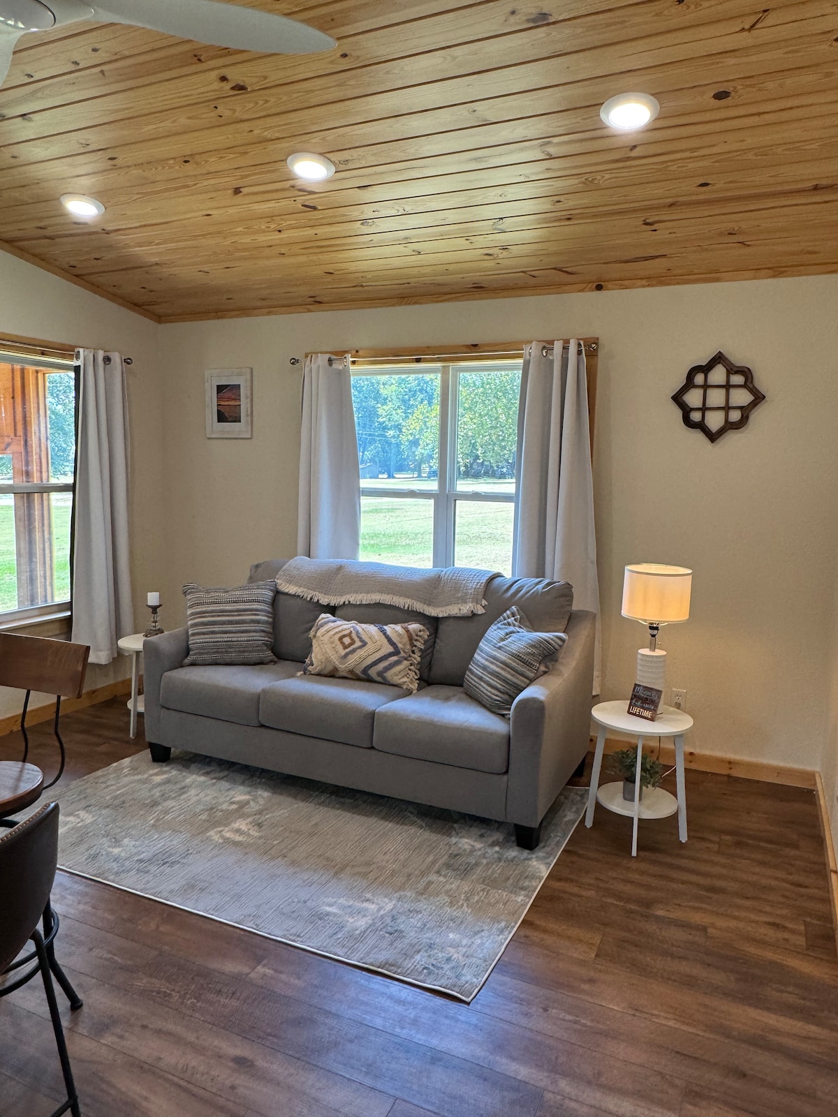 Si buscas paz y tranquilidad, ¡la has encontrado! The Weekender es perfecto para parejas que buscan algo de R&R. Se encuentra a unas 4 millas de McAlester. ¡Esta cabaña tiene todo lo que necesitas para escapar! Relájate en la terraza mientras cocinas un filete en la parrilla, siéntate en el jacuzzi o alrededor de la chimenea al aire libre a solo unos pasos. El interior es de planta abierta con cocina americana, cama tamaño king y acogedora sala de estar. Tenemos varias cabañas por si quieres traer amigos.