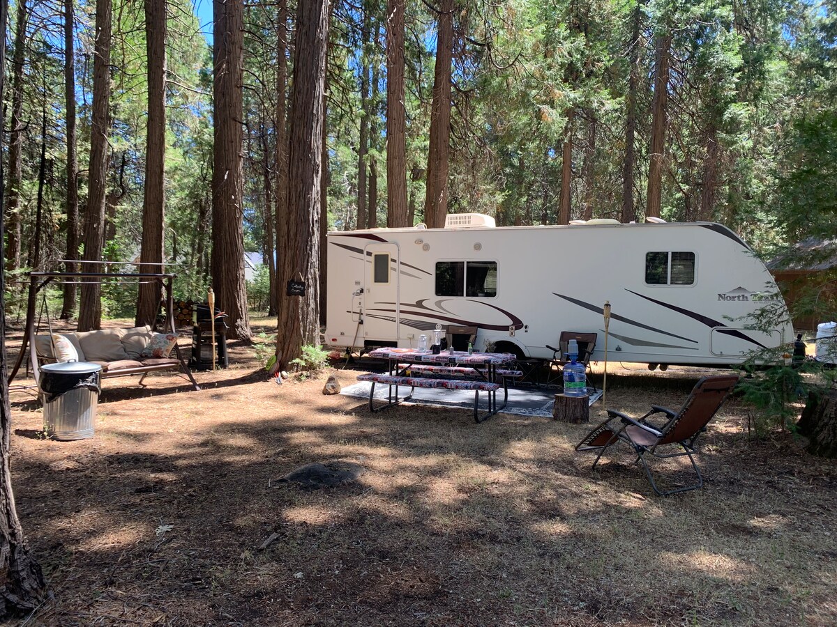 Enjoy the sights and sounds of nature in your own private oasis. Tucked away in the pines, but just 10 minutes to a grocery store this camper turned cottage is sure to give you a mental and physical recharge. On Site Canoe 🛶 Paddle Board 💦 BBQ 🔥 Star Gazing ✨ Bird Watching 🦉 Fishing 🎣 Near By Wineries 🍷 Hiking Trails 🌲 Swimming Spots ☀️ 30 - 45 Minutes to Yuba River 30 Minutes to American River 30 Minutes to Nevada City 20 Minutes to Grass Valley 1 hour 30 minutes to Lake Tahoe