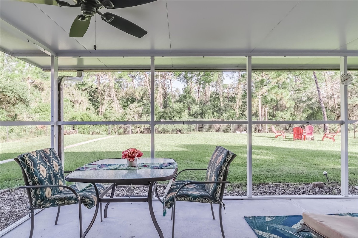 Relájate con toda la familia en esta tranquila casa de campo. Si disfrutas de la paz y tranquilidad del aire libre, pero a solo diez minutos de la ciudad o del circuito de carreras de Sebring, este es el lugar ideal para ti. Tienes mucho aparcamiento privado si vas a traer una caravana, un remolque para caballos o un remolque para coches de carreras. Y estamos a solo tres minutos de la rampa para botes del lago Josephine si quieres traer tu bote para pescar. Si buscas un lugar tranquilo para relajarte, jugar al golf y pescar, este es el lugar ideal.