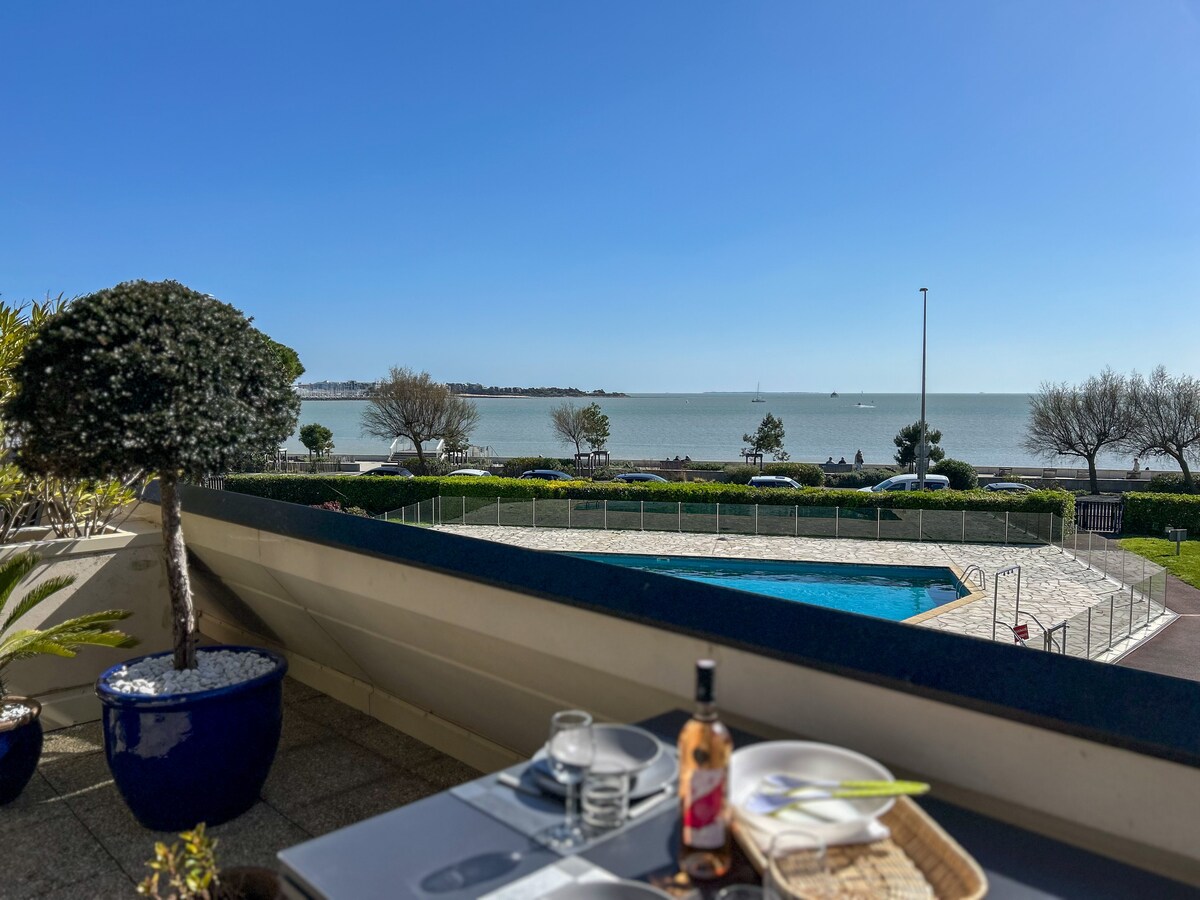 A noter: Résidence avec travaux de ravalement en cours (2026), merci de consulter les détails sur 'Logement' Bénéficiez d'un emplacement privilégié avec une vue panoramique sur La Rochelle, le port des minimes, l’océan. La résidence dispose d'un jardin privé face à la mer et d'un accès à une petite plage. Ce bel appartement, disposant de deux chambres en vue de mer, vient d’être intégralement rénové et décoré avec soin. Entièrement équipé à neuf, il vous offre des prestations de qualité.