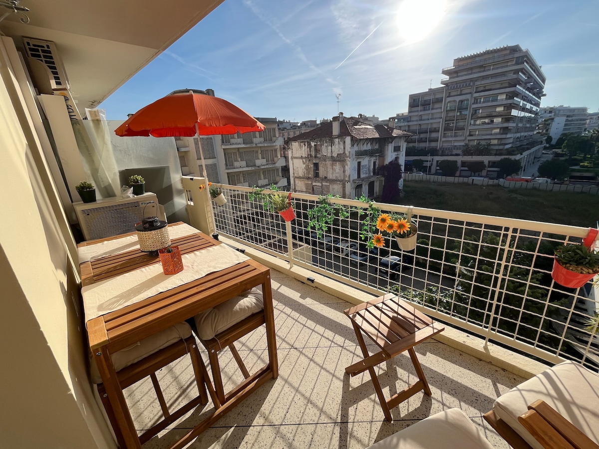 ¡T2 Moderno +Terraza 2 minutos Playas de Juan-les-Pins!