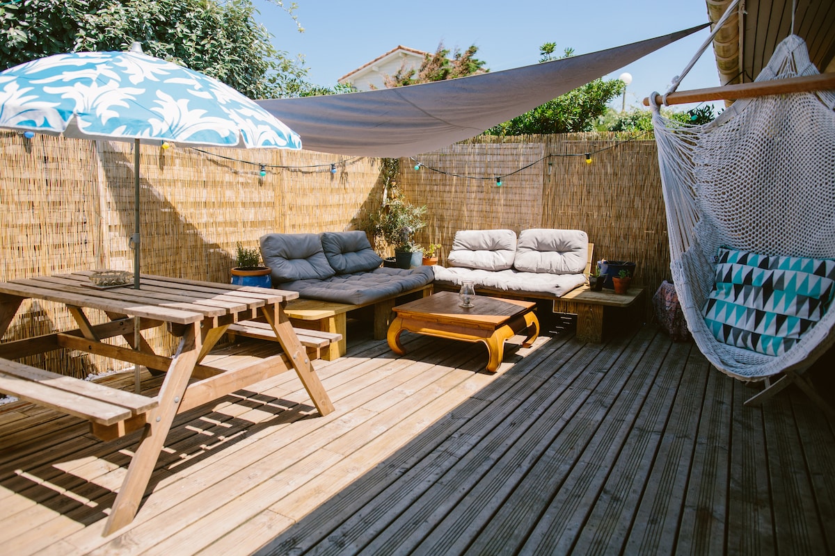 Bienvenidos en "the_beach_shack_seignosse" ! Amplia terraza, fresco apartamento en verano, climatizado en invierno y acceso a la playa a 20 metros !! ¡Mi apartamento es como una pequeña casa independiente. Ingrese por la gran terraza amueblada de 30m2, disfrute de una sala de estar con sofá, escritorio y hamaca, abierta a la cocina, 2 habitaciones abuhardilladas en la planta superior y un baño con inodoro independiente. Todo en 42m2.