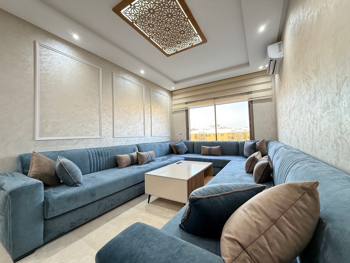 En casa de Anas, su satisfacción es mi prioridad. Acceso rápido, completo , seguro y tranquilo , limpio y excelente servicio. A 5 minutos de la estación de tren de Temara y a 2 minutos de las grandes superficies (ASWAK SALAM / CARREFOUR). El apartamento está situado en un edificio nuevo, en la 4.ª planta con ascensor y plazas de aparcamiento delante del edificio. El apartamento está equipado con fibra óptica de 100 M La decoración interior del apartamento está hecha con amor para que nuestros huéspedes se sientan como en casa