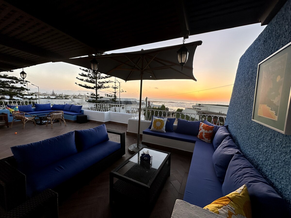 Relájate por tu cuenta o con tu familia en este lugar tranquilo. Azotea privada. A menos de 1 minuto a pie de la playa. A 15 minutos en coche de Rabat Para las familias que viajan con los más pequeños, ofrecemos una cuna y una silla alta sin costo bajo petición. Cocina totalmente equipada. ✅ Cafetera ✅ Lavadora ✅ Secadora de pelo. ✅ Toallas. ✅ WiFi rápido ✅ Botiquín de primeros auxilios ✅ Plancha ✅ Casa para no fumadores 🚭 Solo se permite fumar en el balcón o en la azotea Traslado al aeropuerto de Rabat o Casablanca disponible por un cargo adicional.
